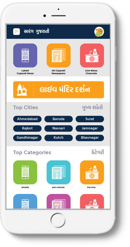Sarang Gujarati is best Gujarati mobile news application that consists latest Gujarati breaking news, short news, Gujarati news headlines in flashcards, top Gujarati newspapers, live Gujarati news channels, live mandir darshan and free Gujarati OTT Platform with infotainment options in one application.